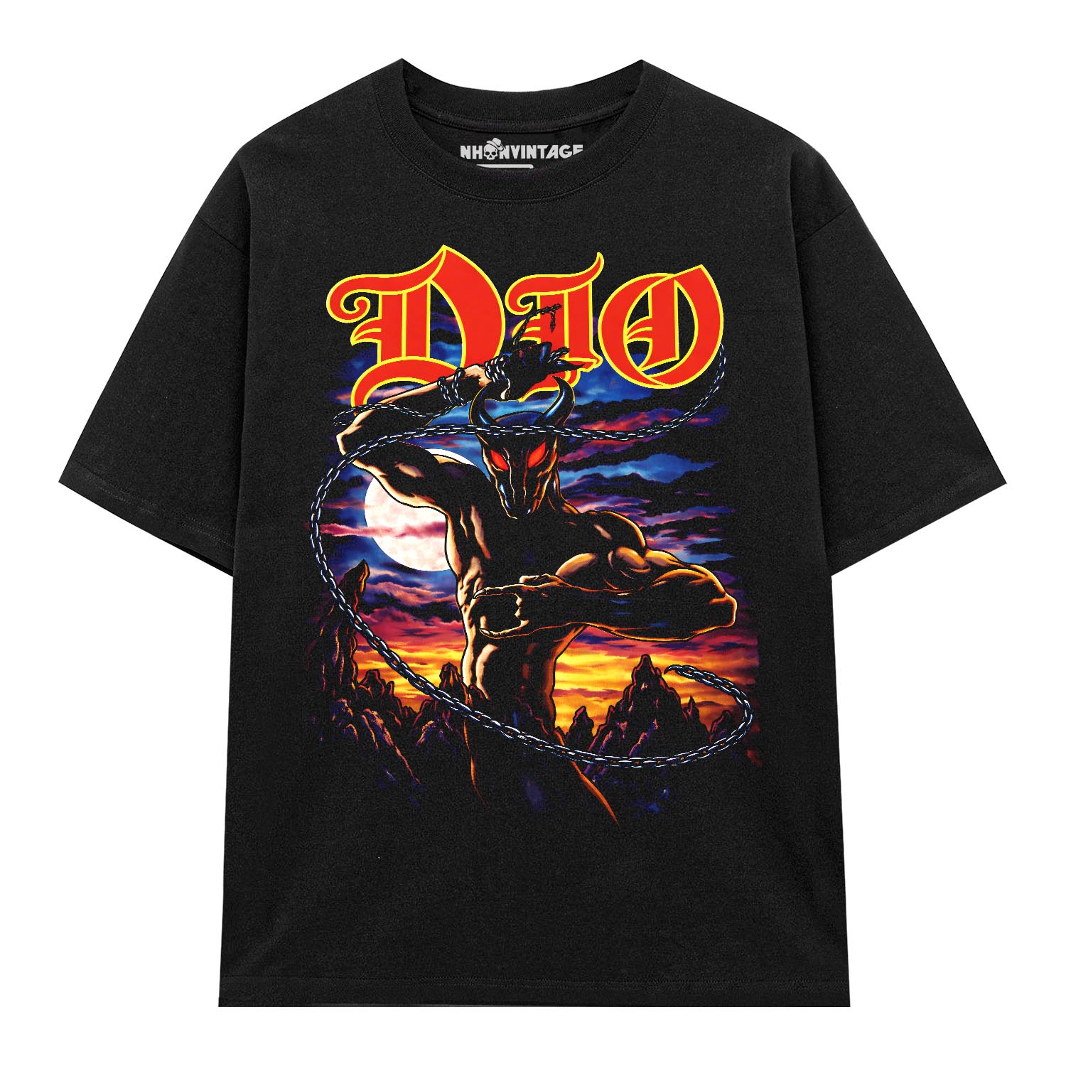 Áo thun rock vintage Dio Black – B122 là item dành cho những tín đồ yêu thích Heavy Metal và ban nhạc rock huyền thoại Dio. Thiết kế mạnh mẽ, u tối và đầy năng lượng, thể hiện rõ tinh thần nổi loạn, quyền lực và cá tính đặc trưng của dòng rock cổ điển.