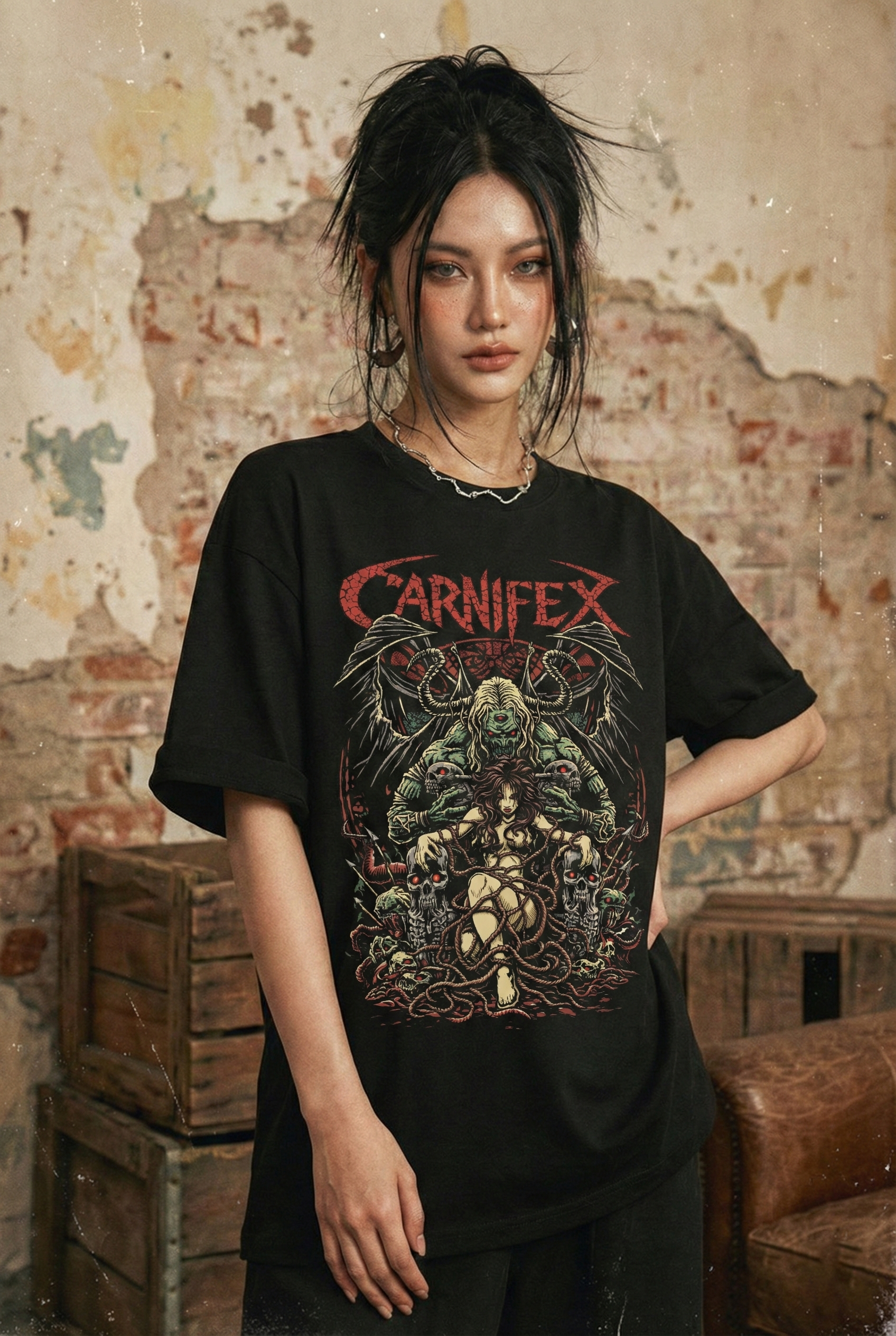 👉 Áo thun rock vintage Carnifex Hellbound – B135 là lựa chọn dành cho những ai sống cùng metal, yêu bóng tối và muốn outfit trở thành một tuyên ngôn không cần giải thích.