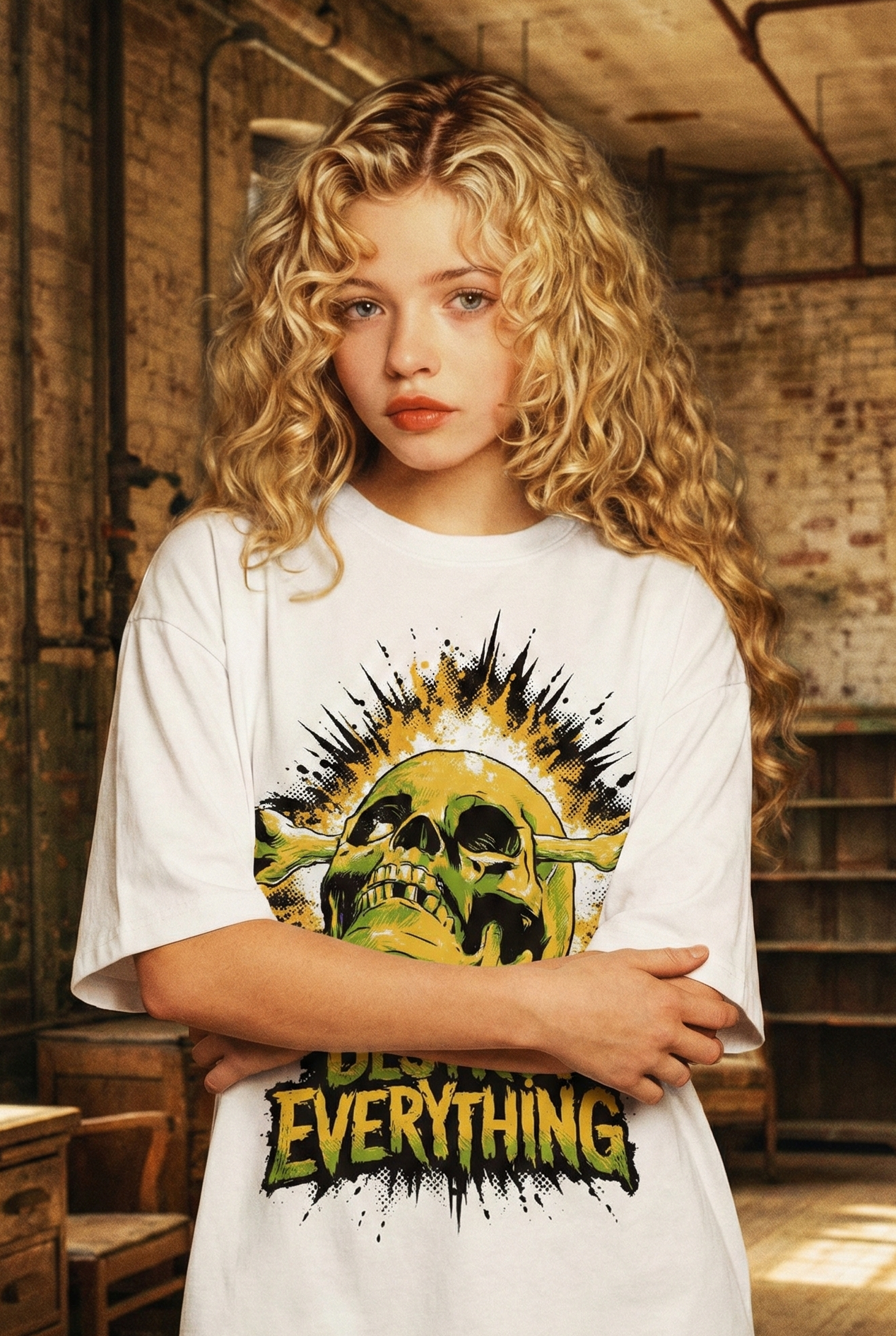 Áo thun dark streetwear Destroy Everything – W22 là thiết kế mang tinh thần phá hủy, phản kháng và cực đoan đúng chất streetwear u tối. Mẫu áo không mang tính thỏa hiệp hay an toàn, mà thể hiện trực diện năng lượng nổi loạn, bạo lực thị giác và cái tôi không bị kiểm soát.