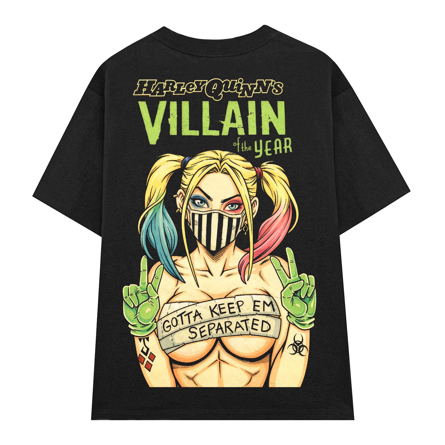The Harley Quinn’s Villain of the Year – SPB2 vintage t-shirt is a Special Edition made for those who embrace comic culture, iconic female villains and rebellious graphic streetwear. The design delivers a playful, provocative and unapologetic attitude, blending vibrant comic colors with a vintage layout to create a true collector’s piece.