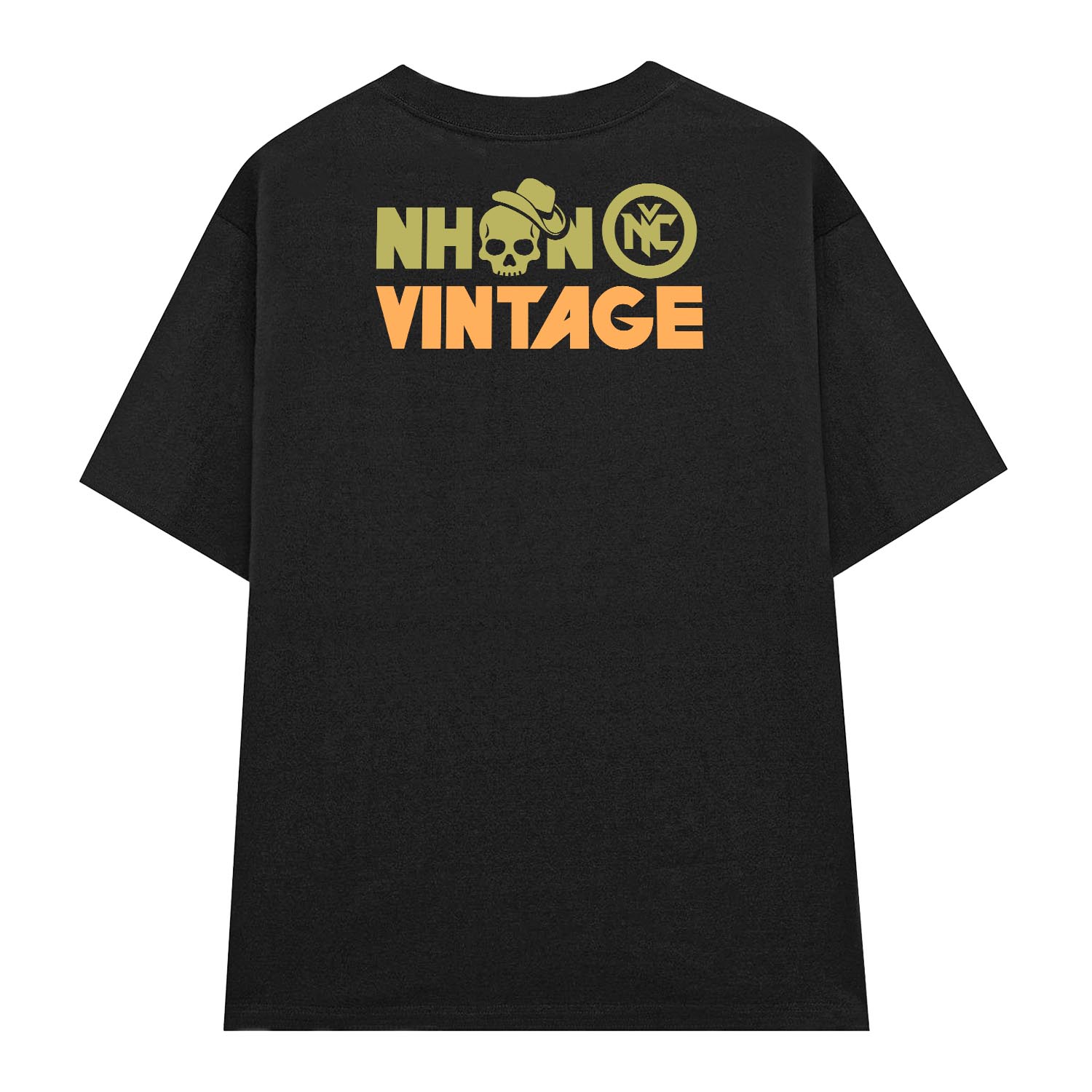 Mặt sau in logo NHON VINTAGE bản lớn ở lưng áo.